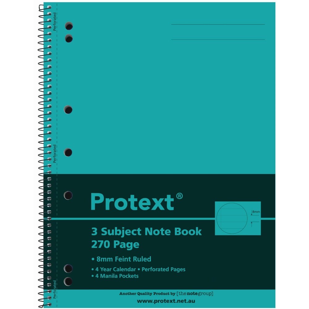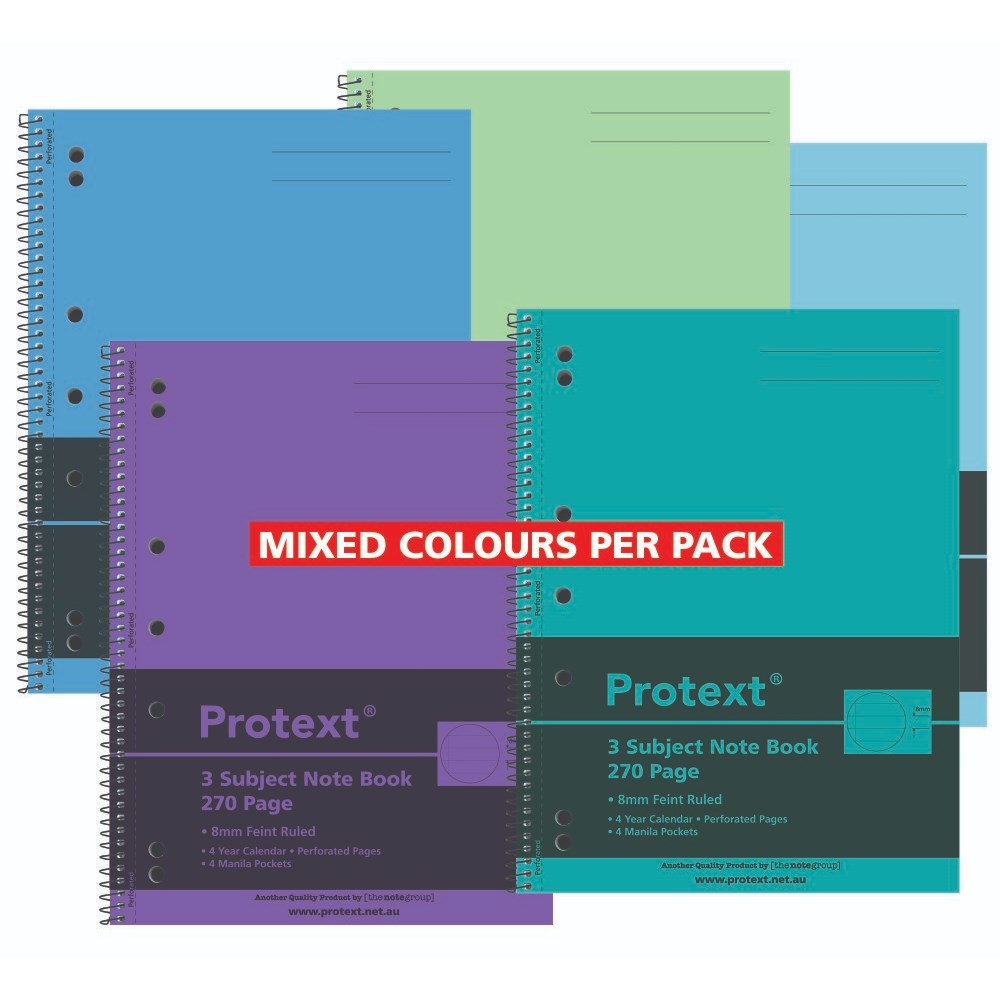 Protext 3 Subject Notebook Polypropylene Cover 4 Pockets A4 270 Page Pack Of 5 Assorted
