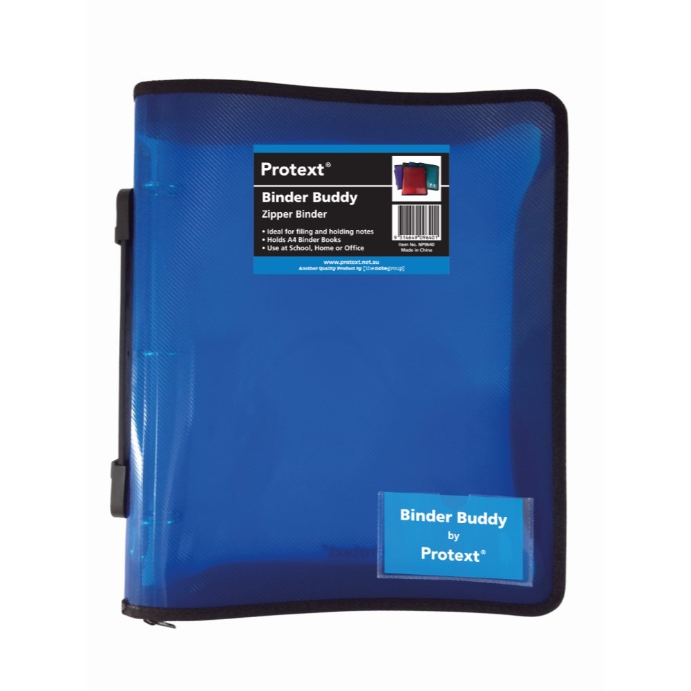 Protext Binder Buddy With Zipper And Handle A4 3 Ring 25mm Blue