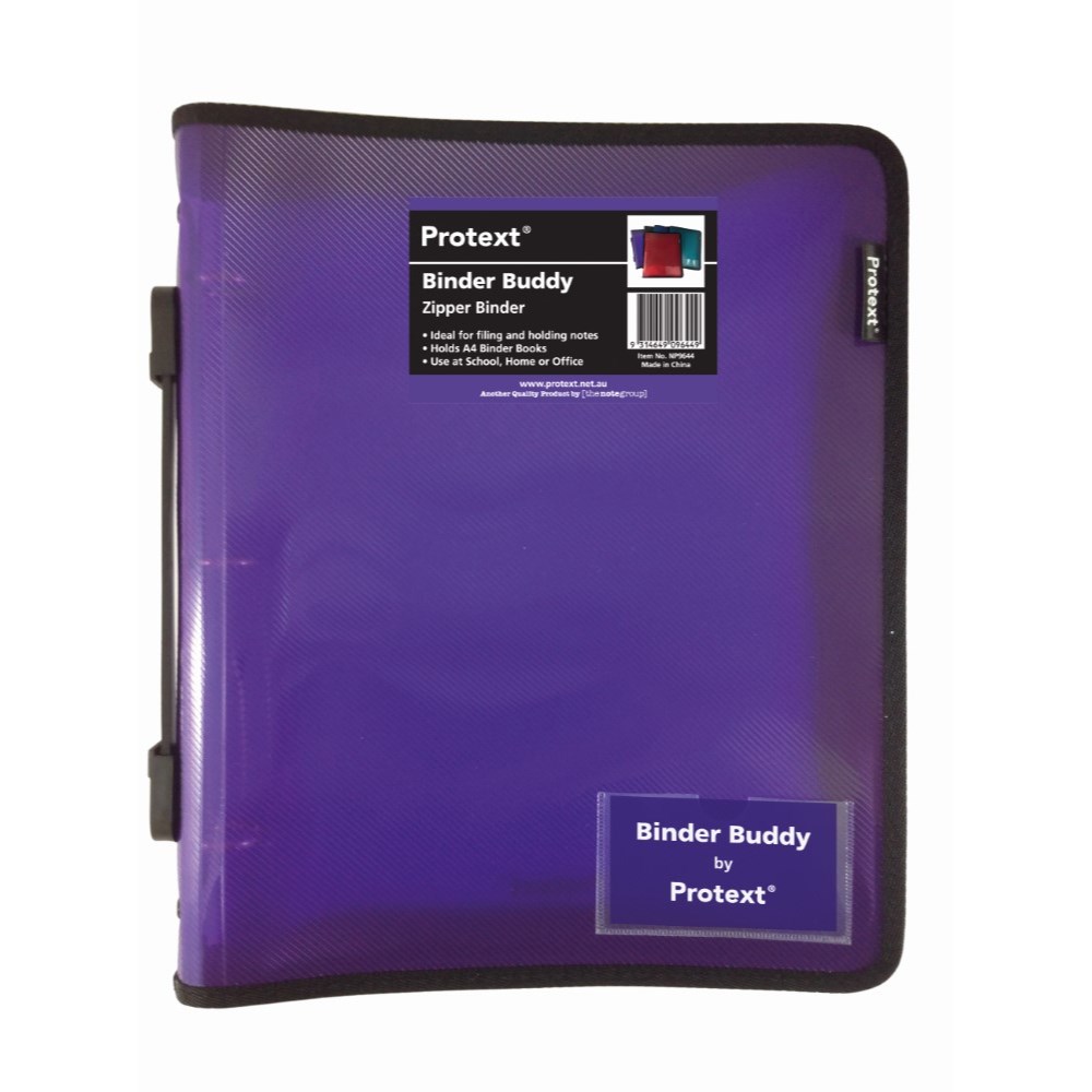 Protext Binder Buddy With Zipper And Handle A4 3 Ring 25mm Purple
