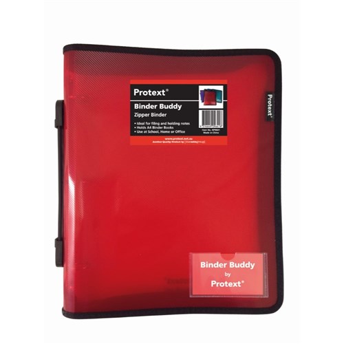 Protext Binder Buddy With Zipper And Handle A4 3 Ring 25mm Red