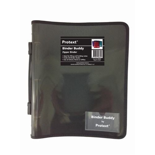 Protext Binder Buddy With Zipper And Handle A4 3 Ring 25mm Smoke