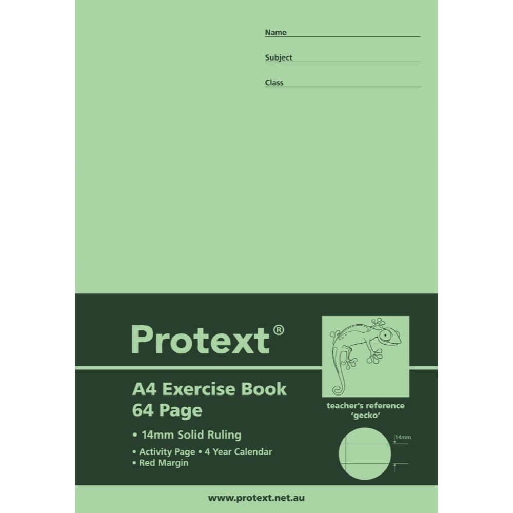 Protext Exercise Book A4 64 Page 14mm Solid Ruled With Margin Gecko