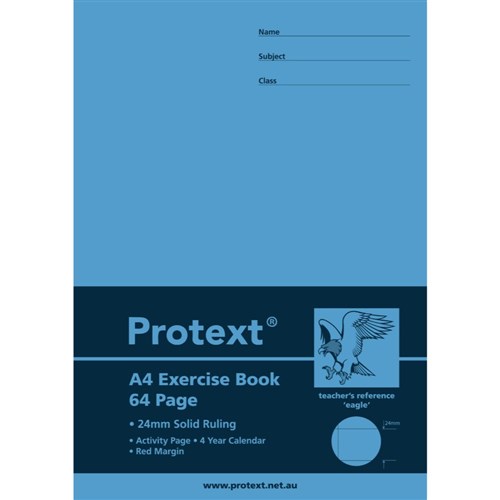 Protext Exercise Book A4 64 Page 24mm Solid Ruled With Margin Eagle