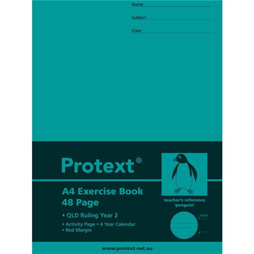 Protext Exercise Book A4 Queensland Ruled Year 2 48 Page Penguin