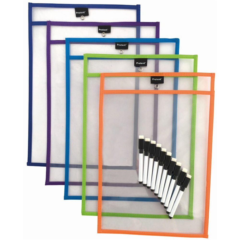 Protext Rewritable Pockets A4 With Black Markers Assorted Pack of 10