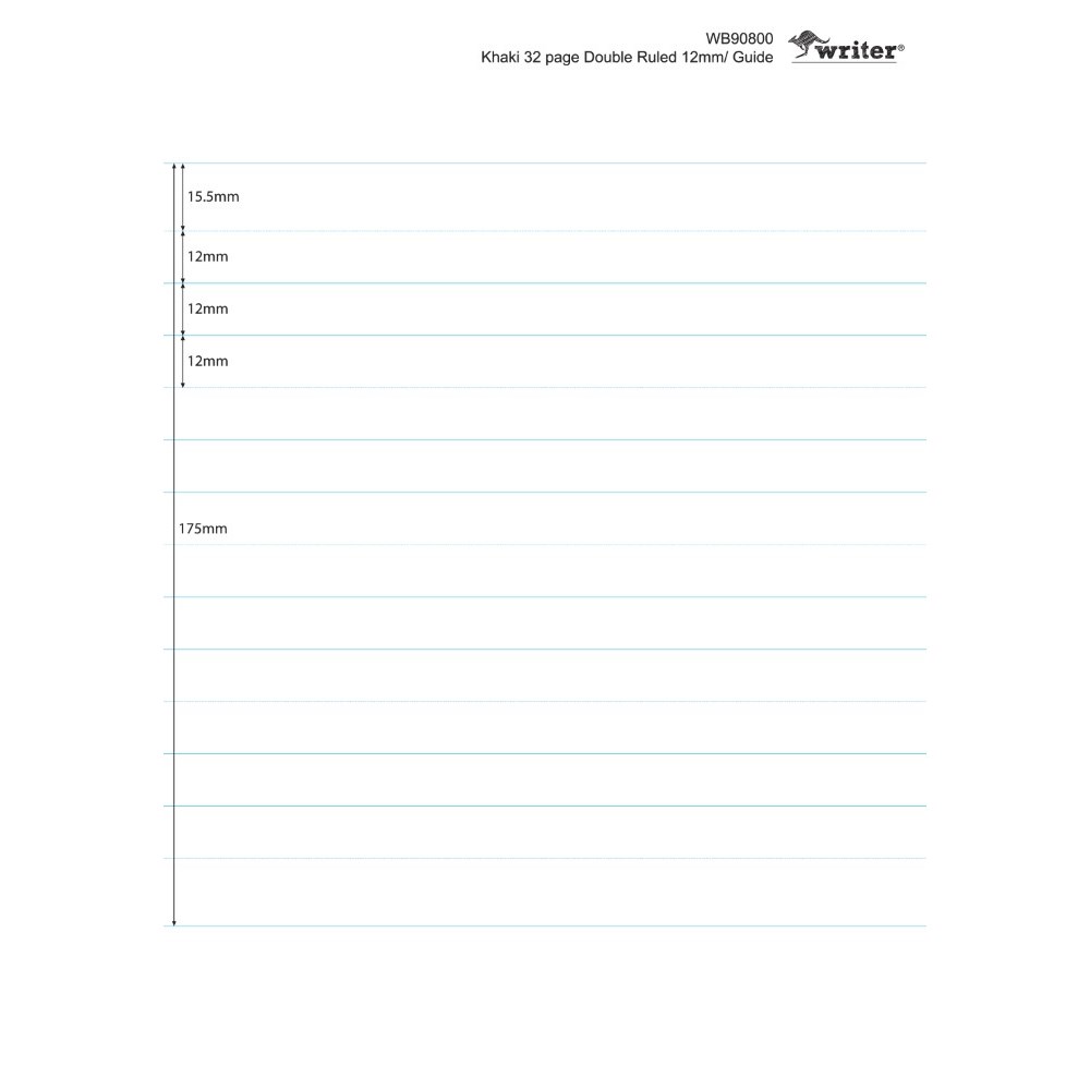 Protext Student Note Book 240 x 175mm Double Ruled 12mm/Guide 32 Page Khaki