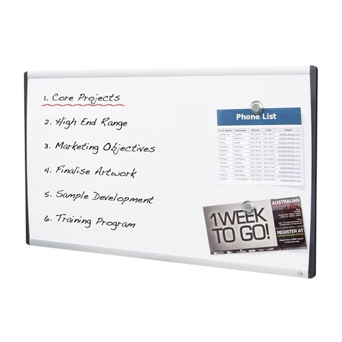 The versatile whiteboard surface doubles as a magnetic board and features a lightweight aluminium frame.
