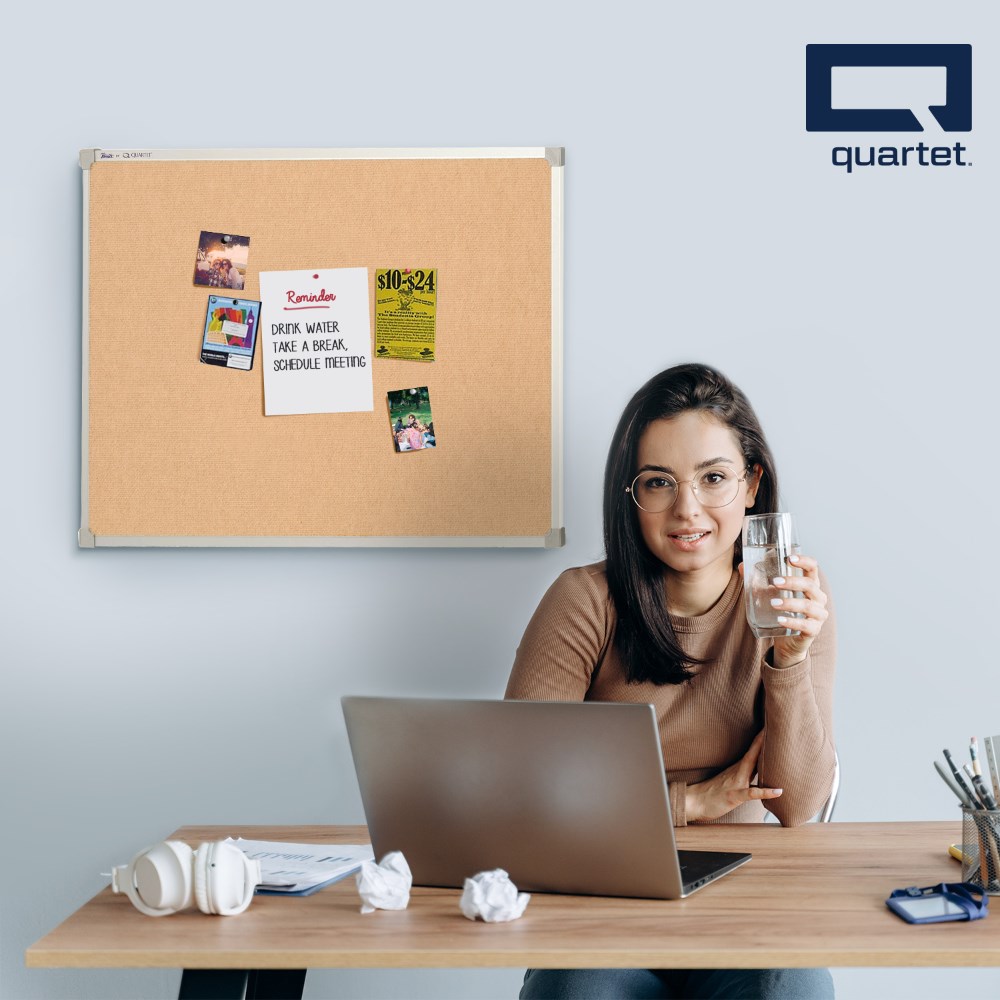 The Quartet corkboard with an aluminium frame is designed to enhance creativity and communication in any setting.