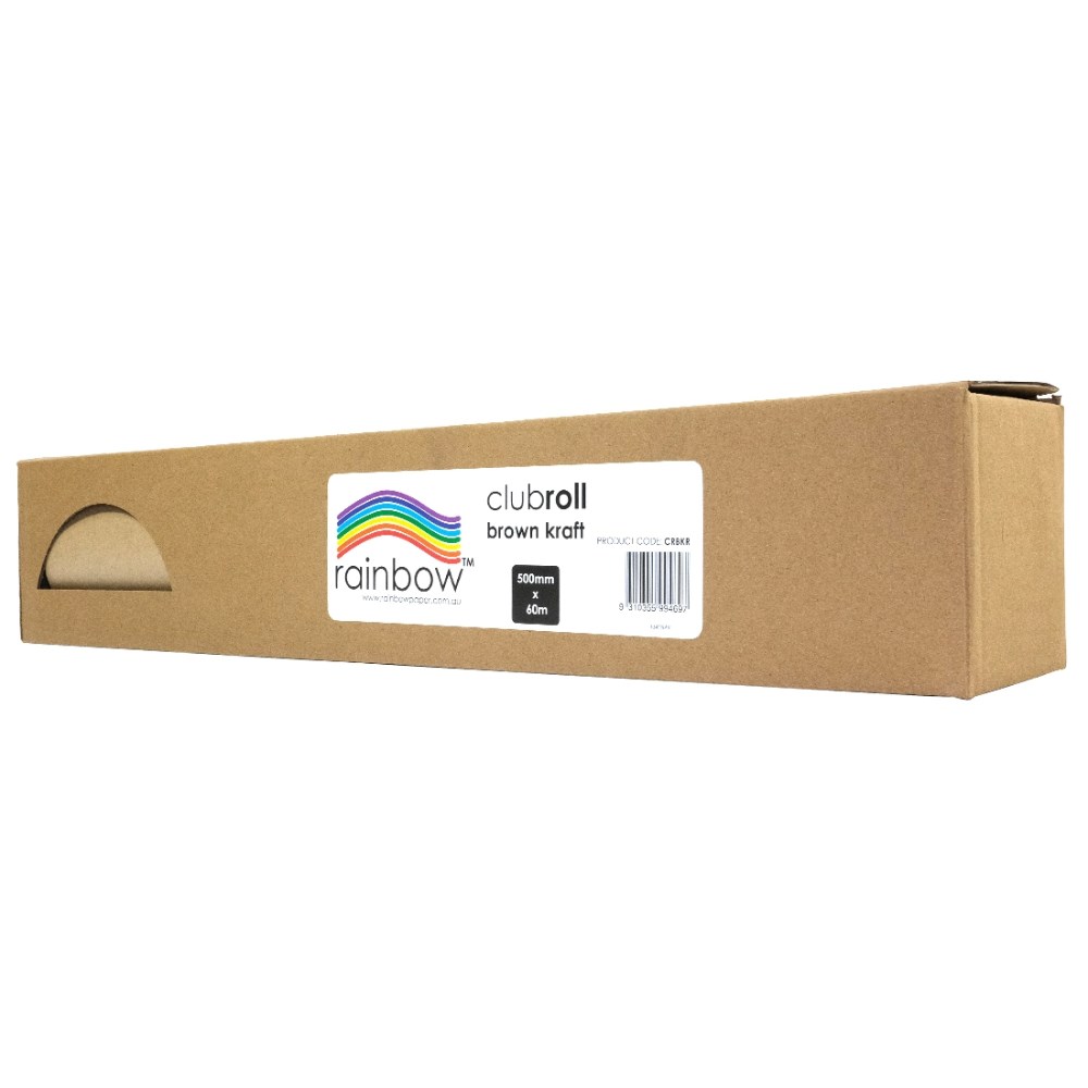 Rainbow Clubroll Kraft Paper Roll 500mm x 60m 70gsm Brown