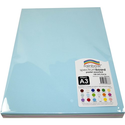 Rainbow Spectrum Board A3 220 gsm Bright Assorted 100 Sheets