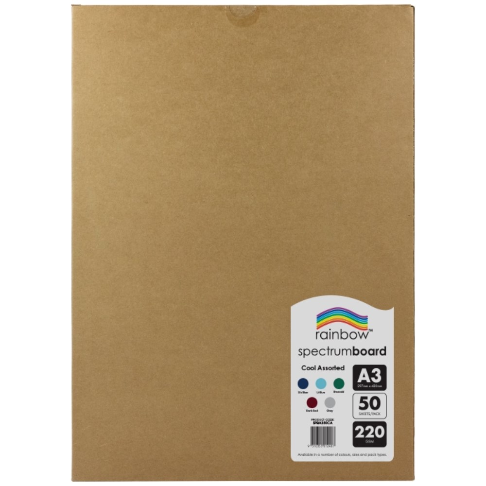 Rainbow Spectrum Board A3 220gsm Cool Assorted 50 Sheets