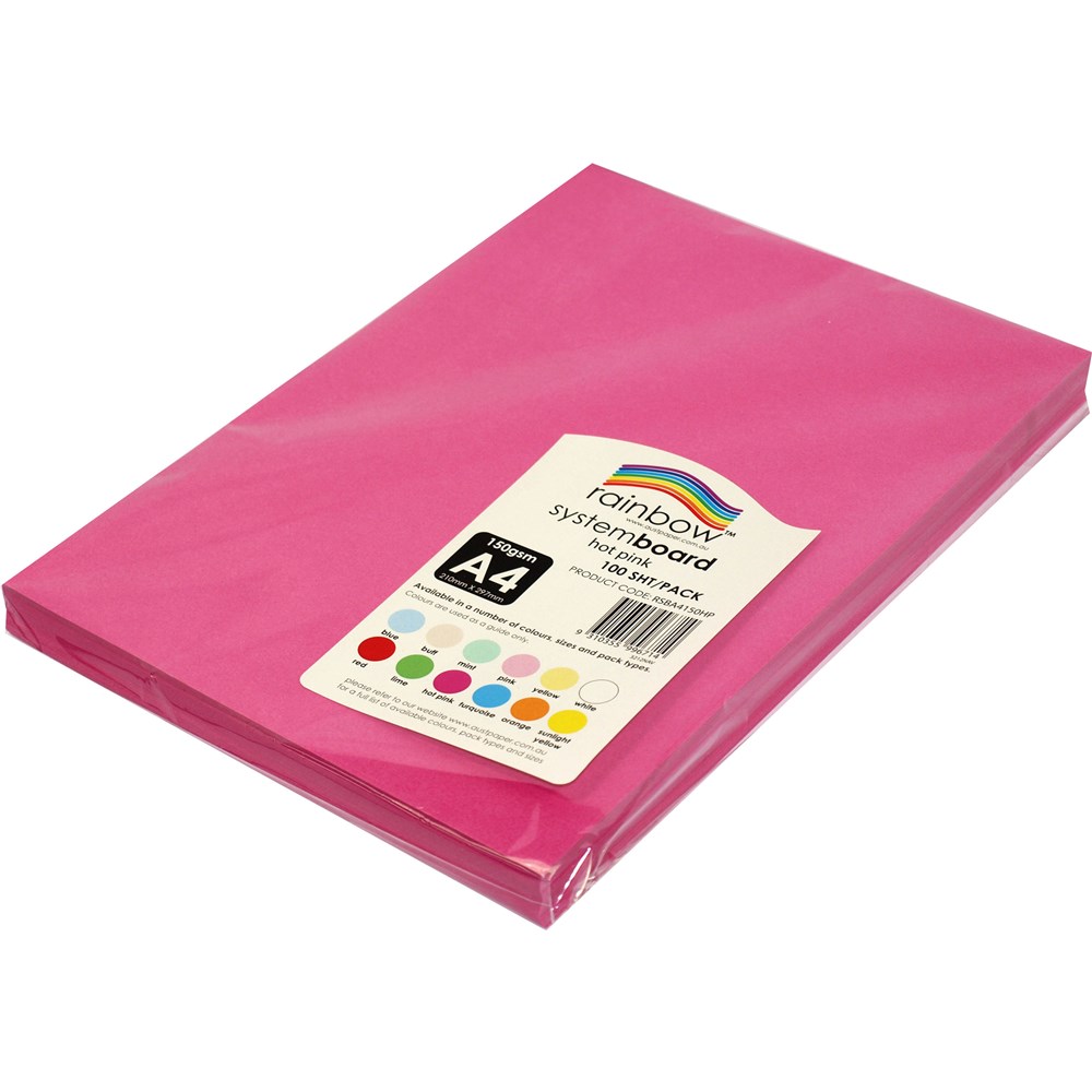 Rainbow System Board A4 150 gsm Hot Pink 100 Sheets