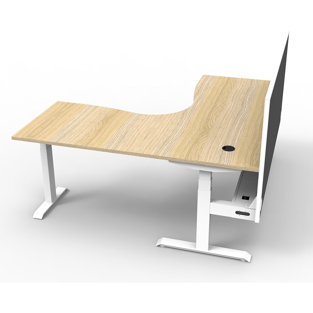Dual Motor 3 stage motorised legs. Corner Workstation with Cable Tray and Screen.