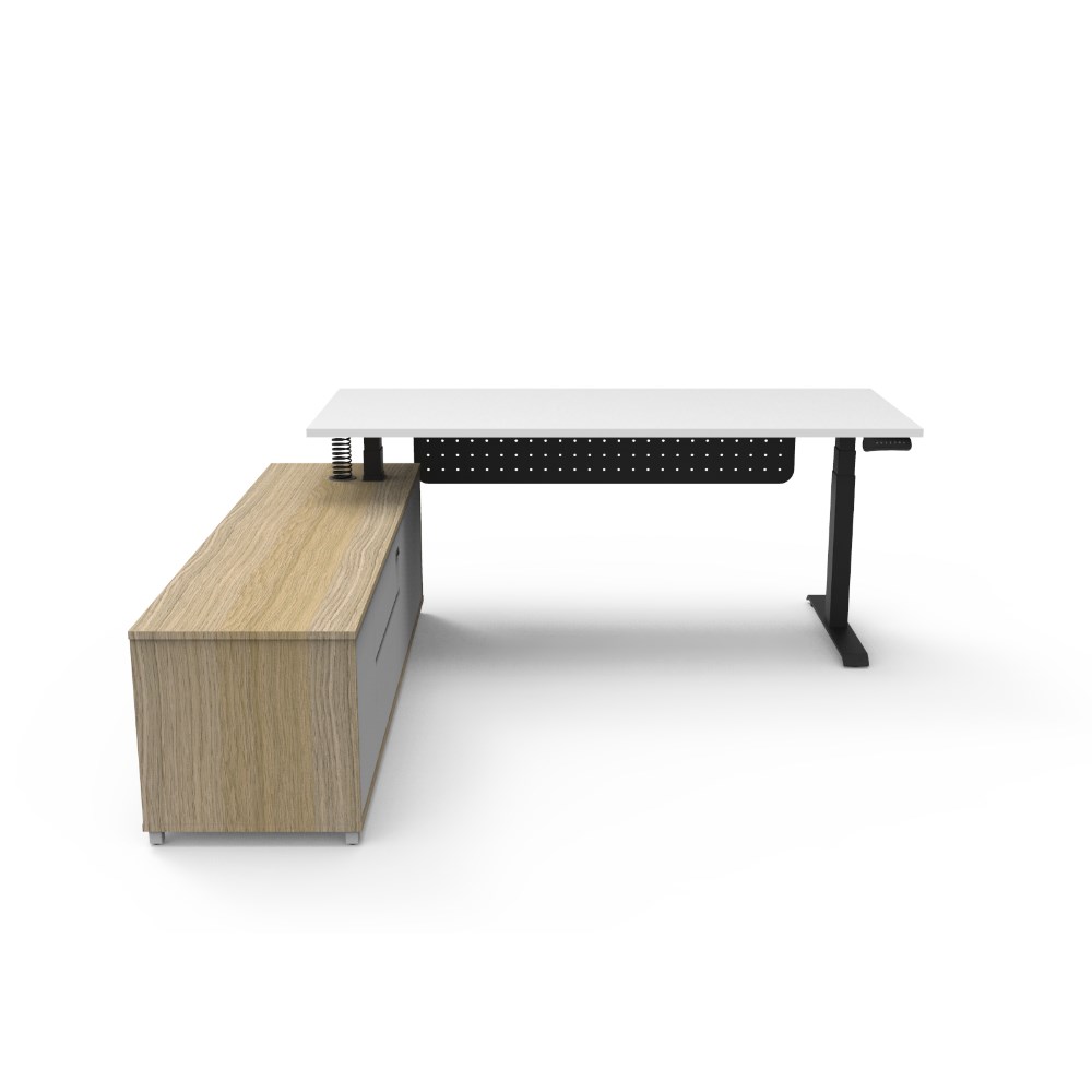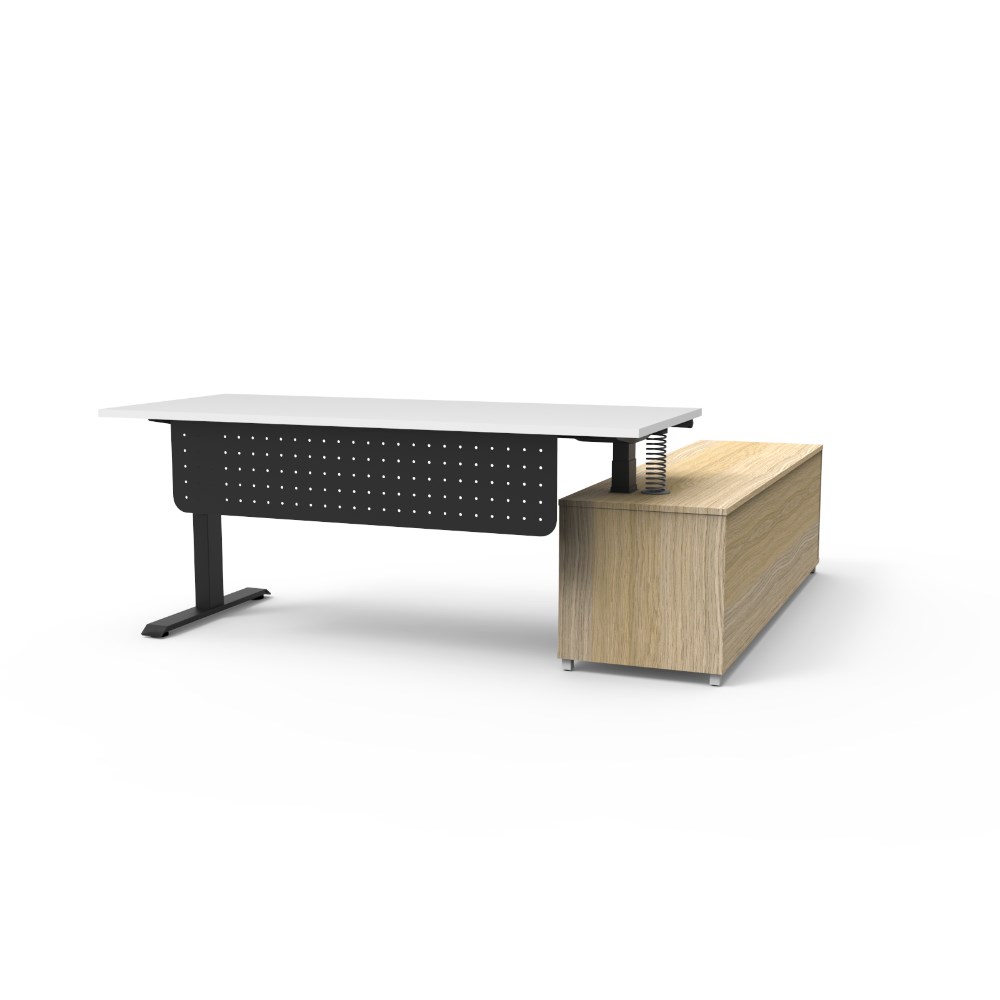 Rapidline Boost+ Executive Desk + LHS Cabinet+Panel 2020W x 1936D x 620-1270mmH Wht/Blk