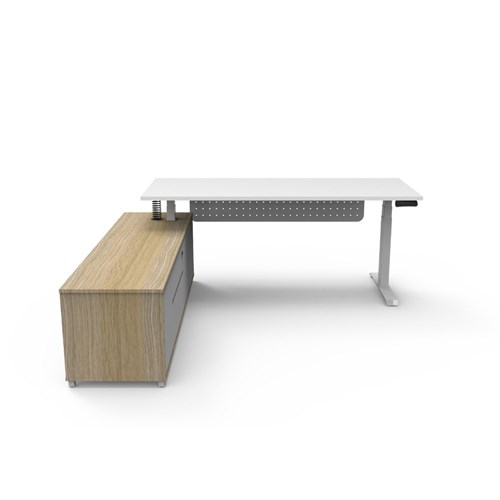 Rapidline Boost+ Executive Desk + LHS Cabinet+Panel 2020W x 1936D x 620-1270mmH Oak/Wht