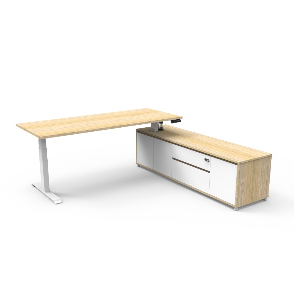 Rapidline Boost+ Executive Desk + RHS Cabinet 2020W x 1936D x 620-1270mmH Oak/White