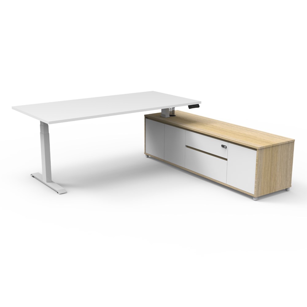 Rapidline Boost+ Executive Desk + RHS Cabinet 2020W x 2011D x 620-1270mmH Oak/White