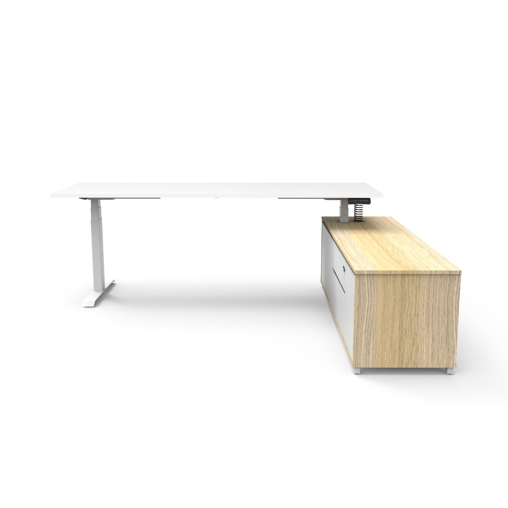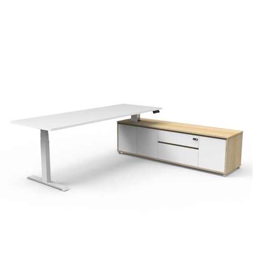 Rapidline Boost+ Executive Desk + RHS Cabinet 2270W x 1936D x 620-1270mmH Oak/White