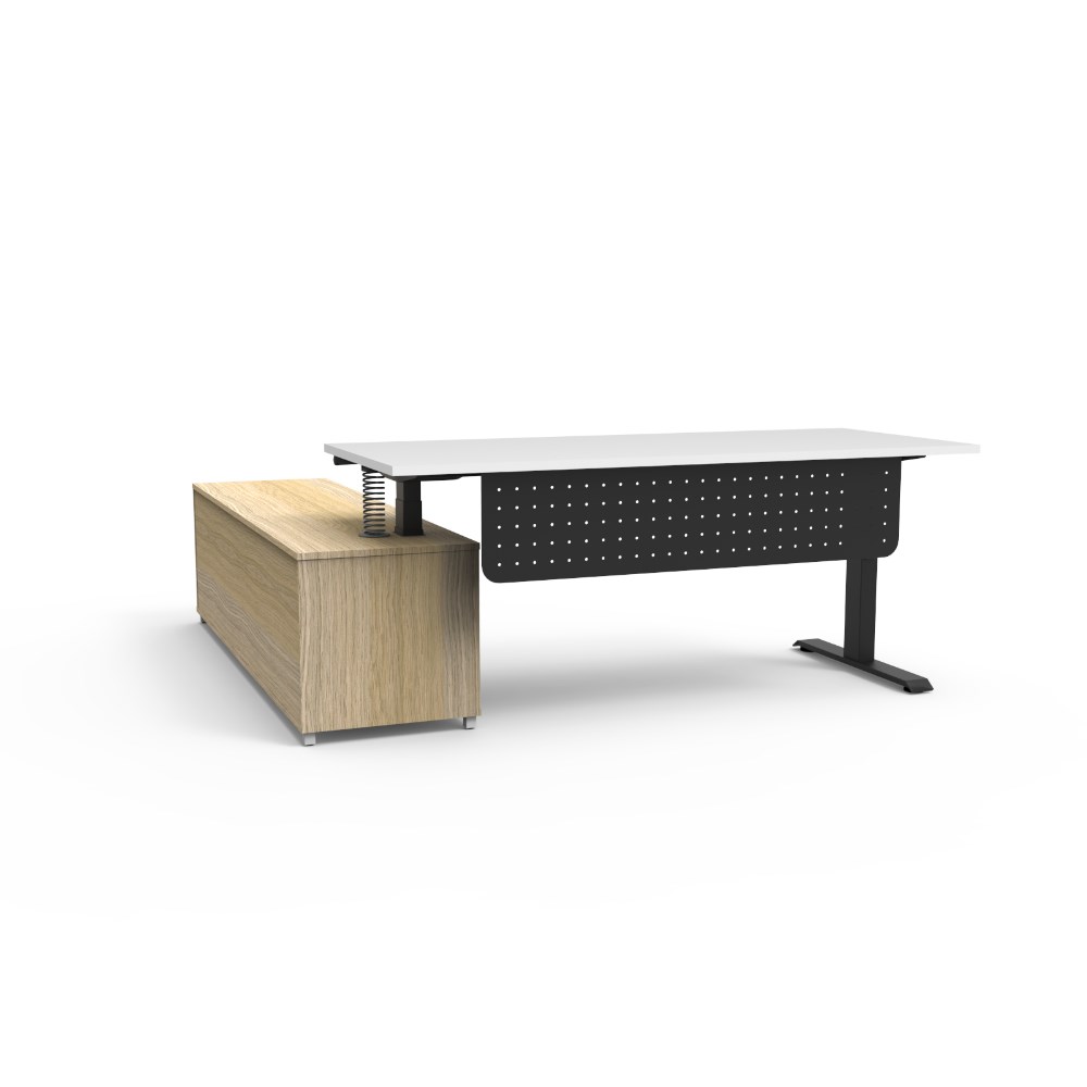 Rapidline Boost+ Executive Desk + RHS Cabinet+Panel 2020W x 1936D x 620-1270mmH Oak/Wht