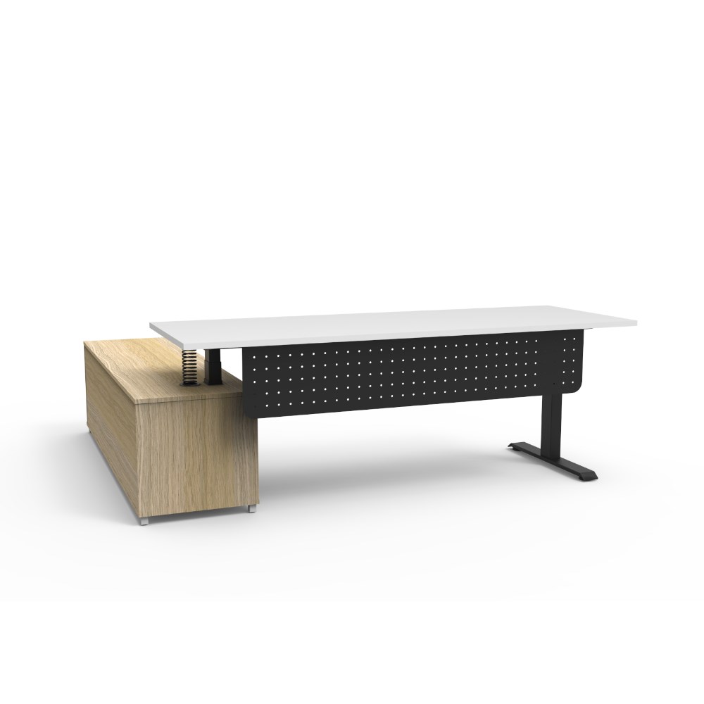Rapidline Boost+ Executive Desk + RHS Cabinet+Panel 2270W x 1936D x 620-1270mmH Oak/Wht