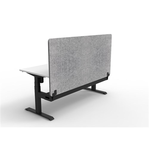 Electric height adjustable single sided workstation with Natural White top and Black Satin frame, Grey Eco screen and cable tray.