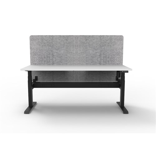 Electric height adjustable single sided workstation with Natural White top and Black Satin frame, Grey Eco screen and cable tray.