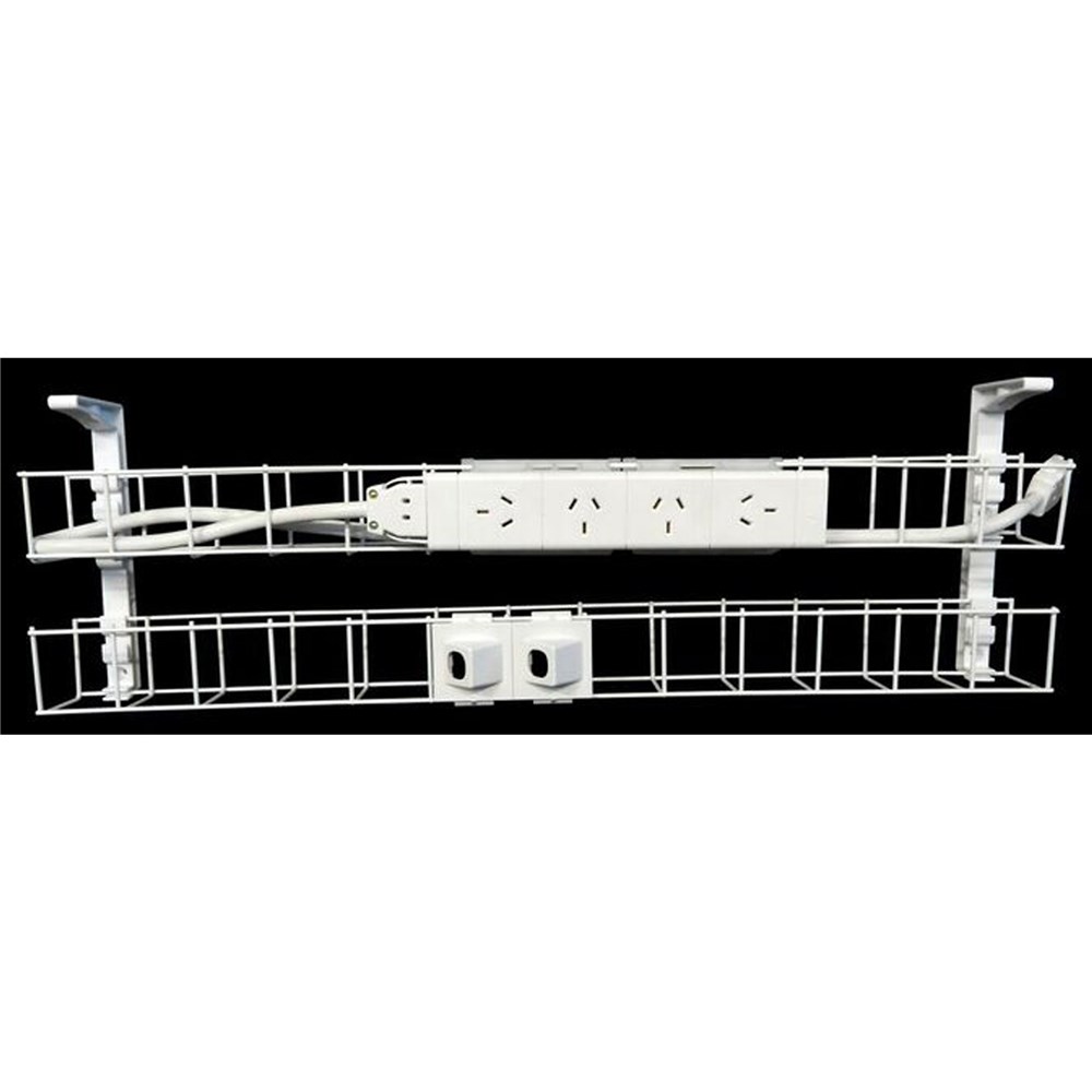 Rapidline Dual Tier Cable Basket Kit 950mm 4GPO+2Data + 1.5m Interconnecting Lead Wht