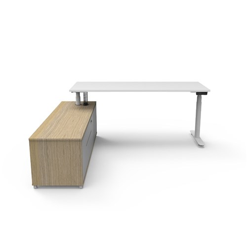 Rapidline Halo+ Executive Desk + LHS Cabinet 2020W x 1936D x 620-1270mmH Oak/White