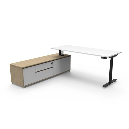 Rapidline Halo+ Executive Desk + LHS Cabinet 2020W x 2011D x 620-1270mmH Oak/White