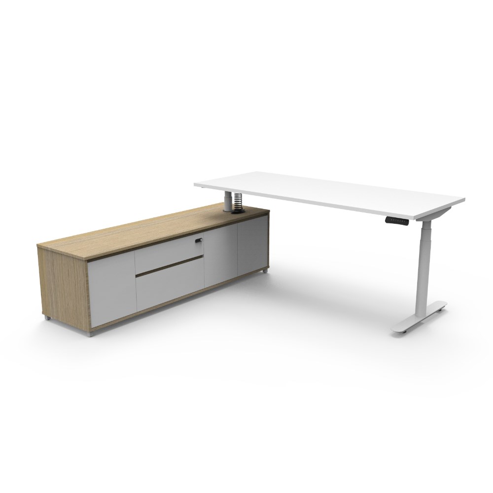Rapidline Halo+ Executive Desk + LHS Cabinet 2020W x 2011D x 620-1270mmH Oak/White