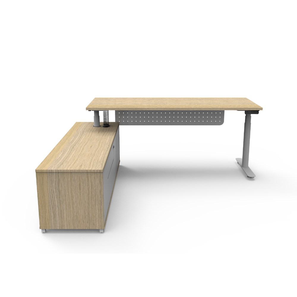 Rapidline Halo+ Executive Desk + LHS Cabinet + Panel 2020W x 1936D x 620-1270mmH Oak/White