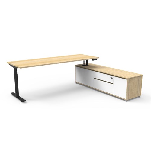 Rapidline Halo+ Executive Desk + RHS Cabinet 2270W x 1936D x 620-1270mmH Oak/Black