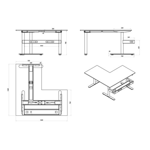 Dimensions: 1500W x 1500W x 750D x 730mmH.