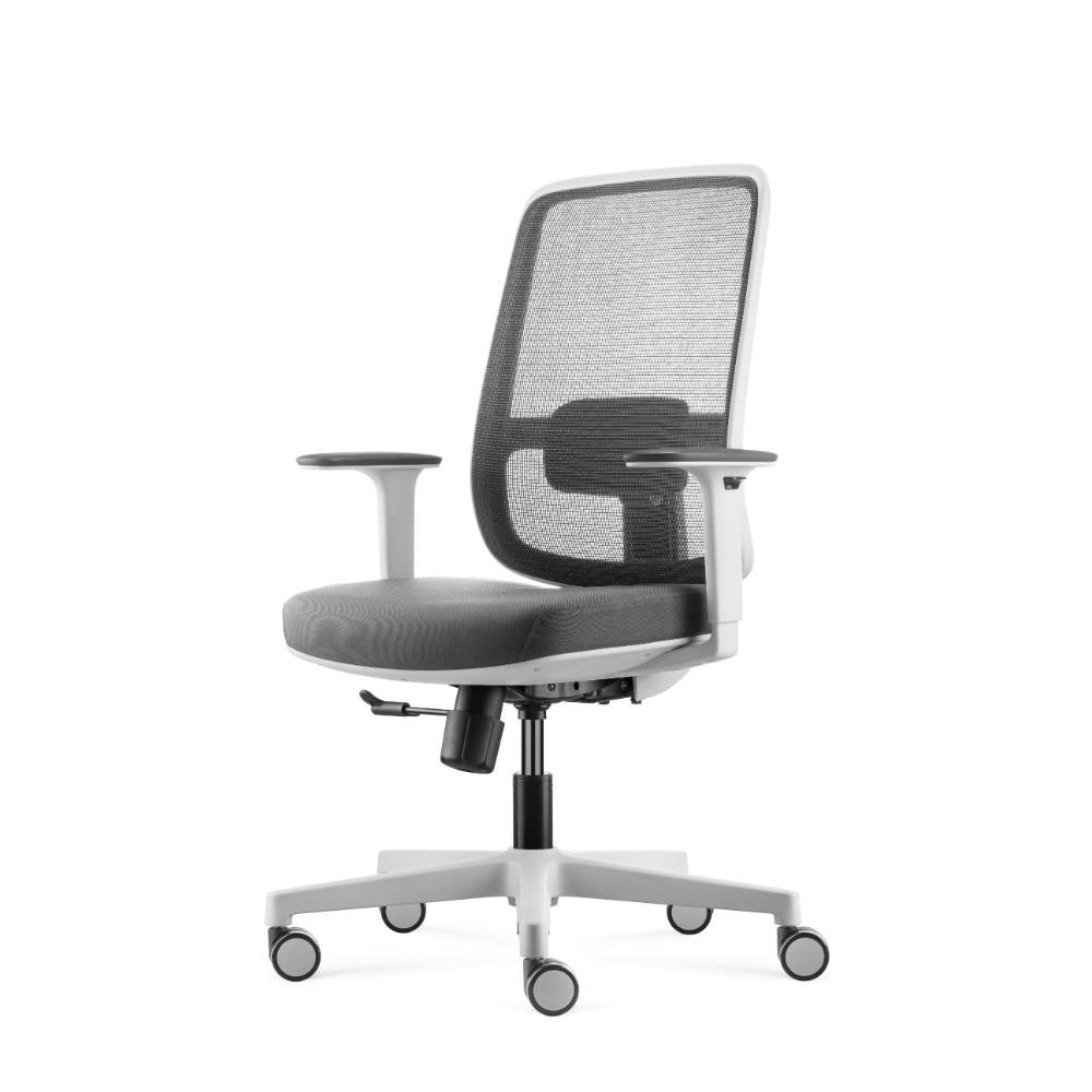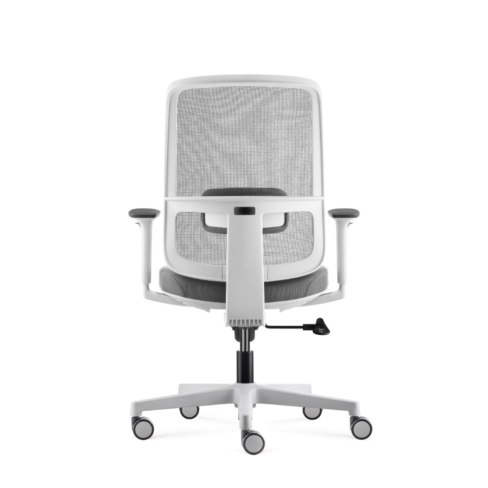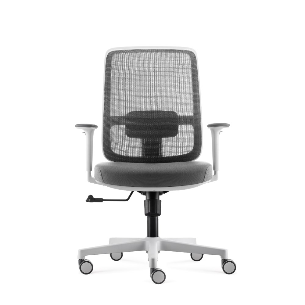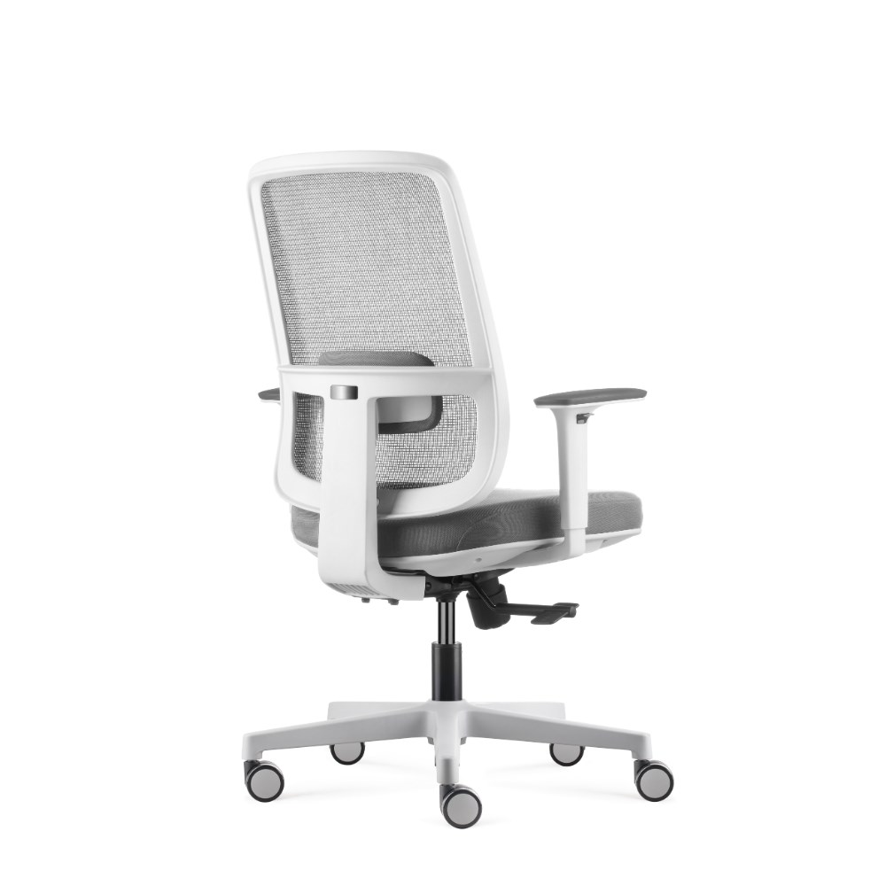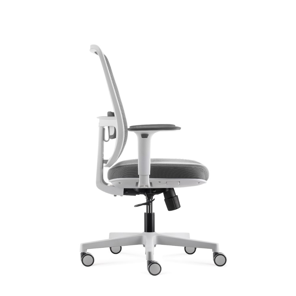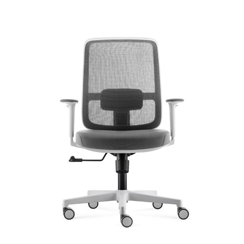 Lotto medium back operator chair. Medium back. White with grey backed mesh and grey fabric seat. White PP and fiberglass mix frame.