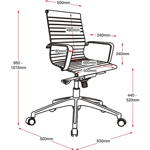 Chair Dimensions: Seat 485W x 460D x Back 490H x Seat 490-610mmH.