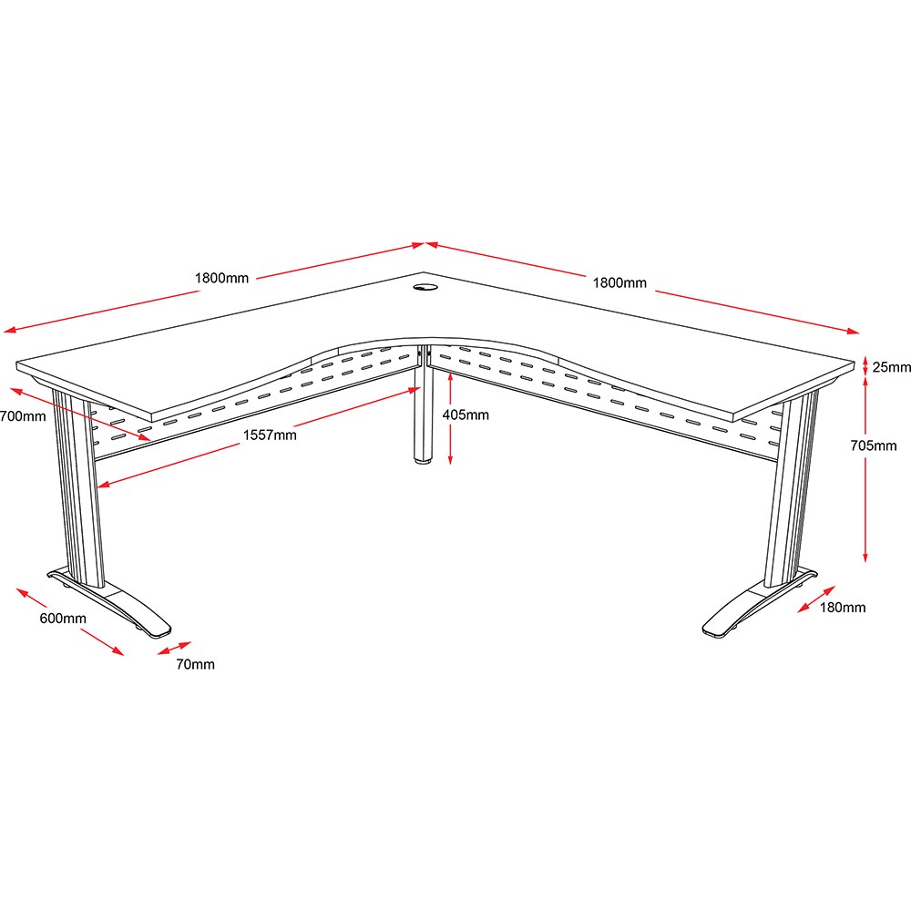 One piece corner workstation with 25mm top.