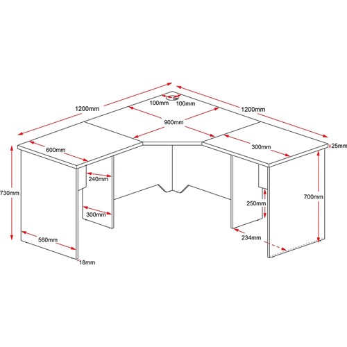 Rapidline Rapid Worker Corner Workstation 1200/1200W x 600D x 730mmH Cherry And Ironstone