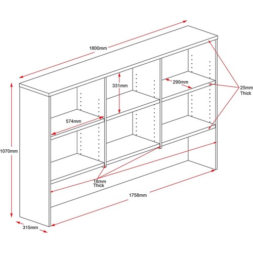 Rapidline Rapid Worker Overhead Hutch 1800W x 315D x 1070mmH Cherry And Ironstone