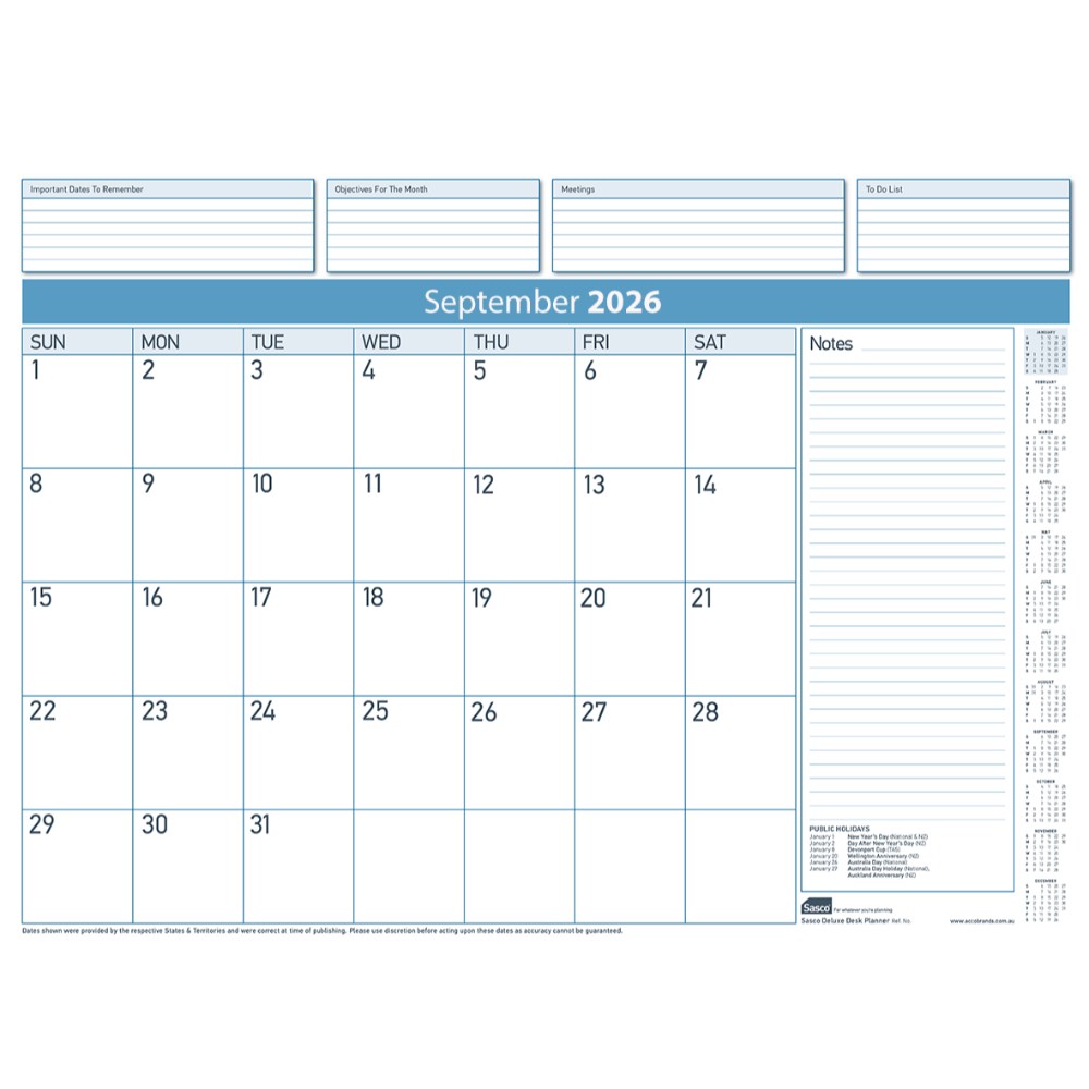 Sasco Deluxe Desk Planner 518 x 387mm Month To View White