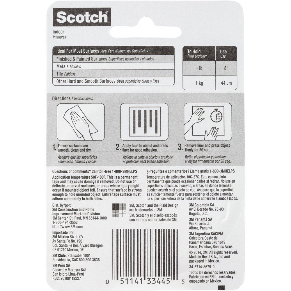 Scotch 110P Mounting Tape 1.3cmx1.9m Indoor Strip