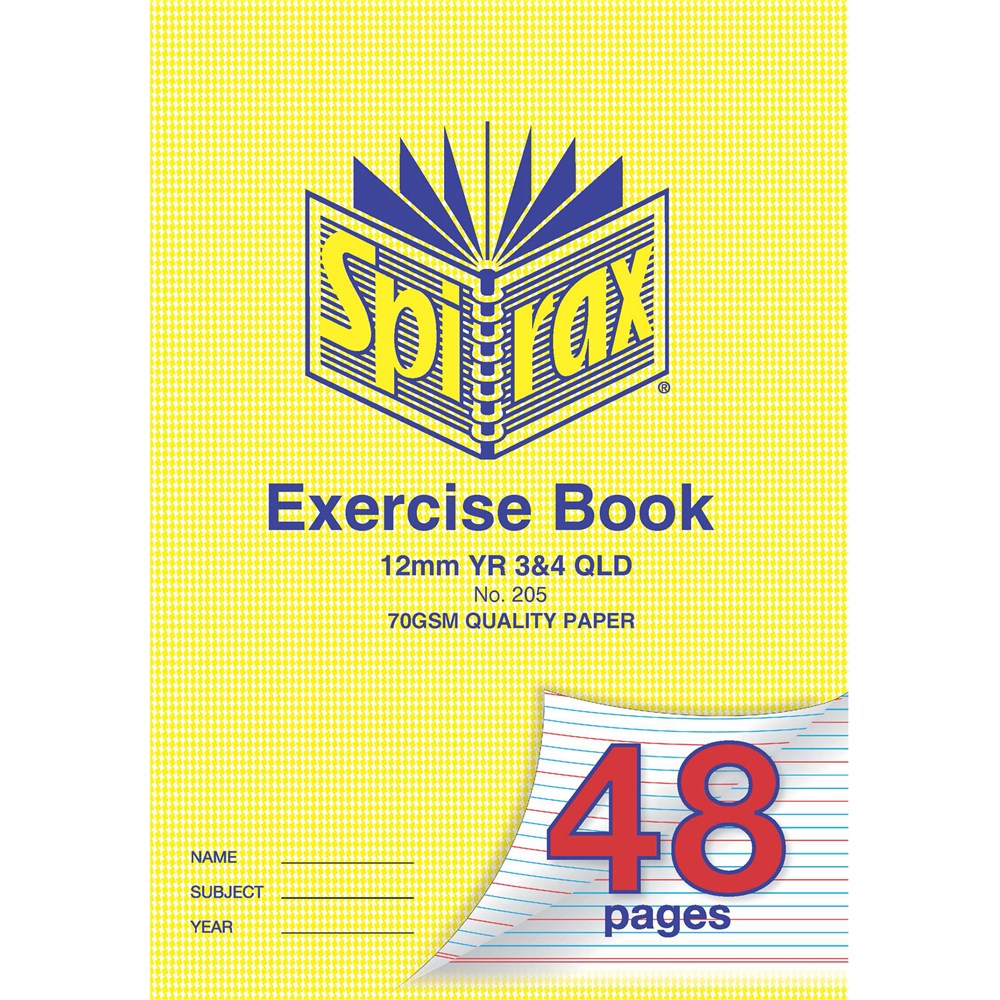 Spirax 205 Exercise Book A4 48 Page Queensland Rulings Year 3/4 12mm
