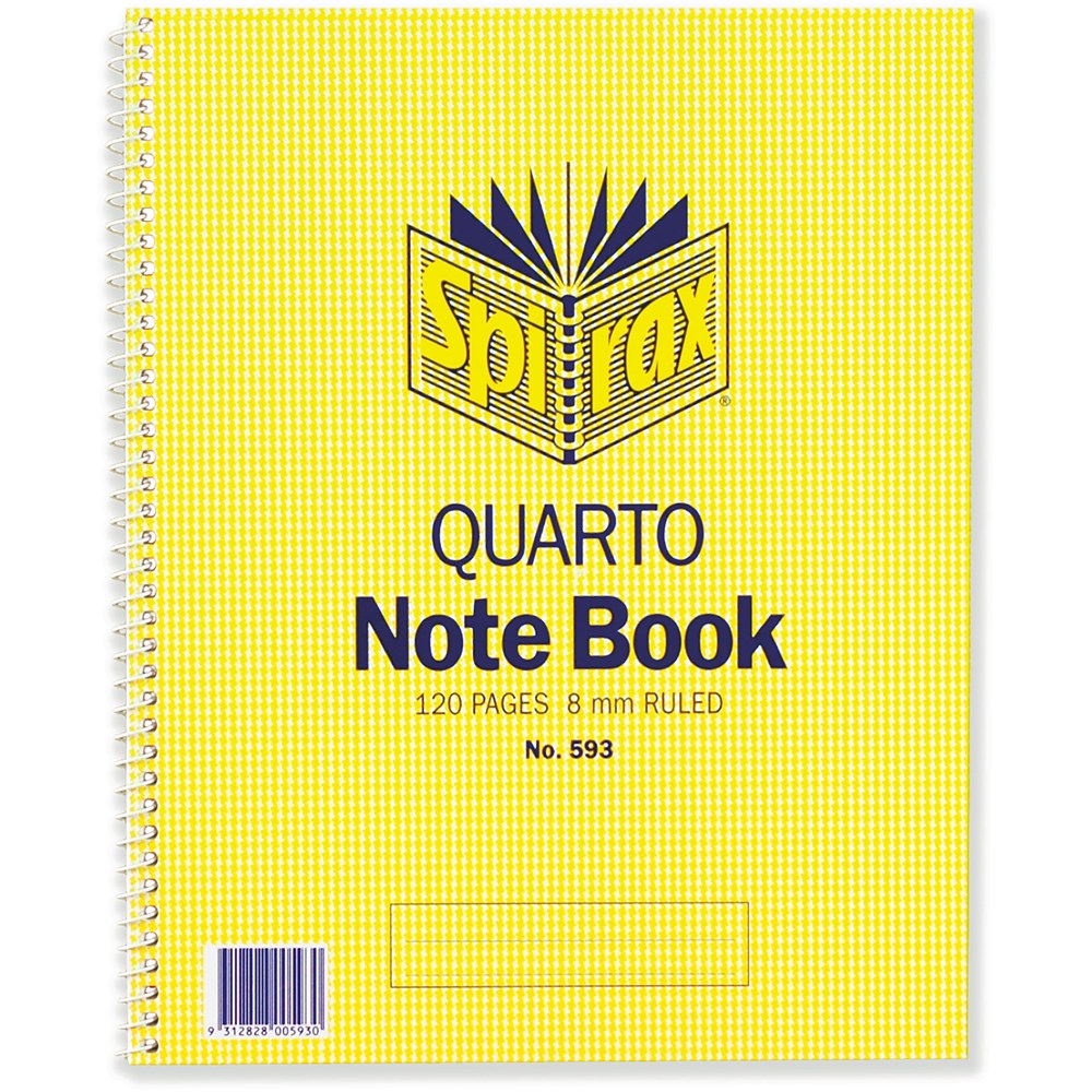 Spirax 593 Quarto Notebook 250 x 200mm Ruled 120 Page Side Opening
