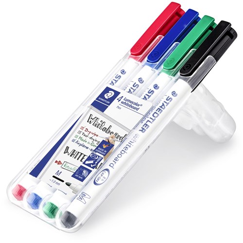 Staedtler 301 Lumocolor Whiteboard Marker Bullet 1mm Assorted Wallet of 4