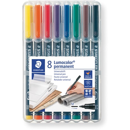 Staedtler 317 Lumocolor Marker Perm Med 1mm Wallet of 8