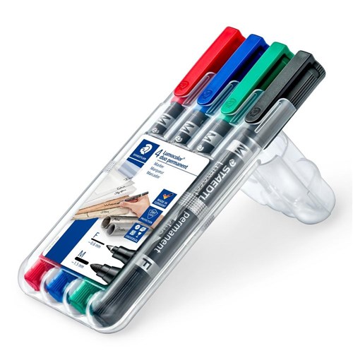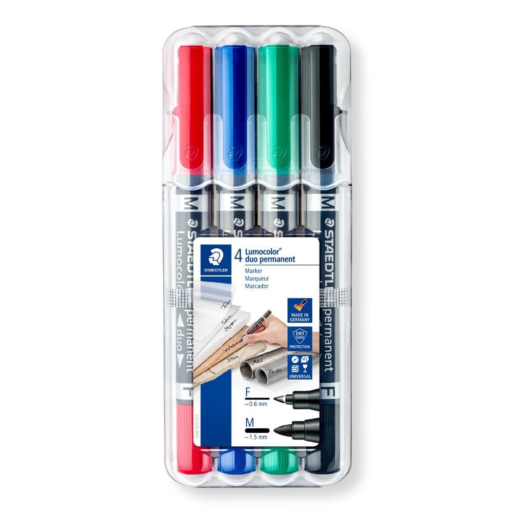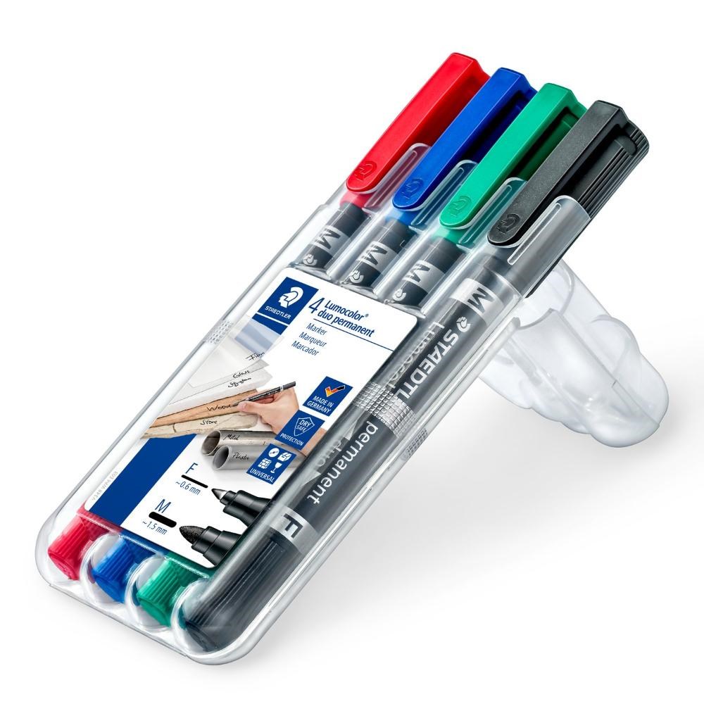 Staedtler 348 Lumocolor Duo Permanent Pen Fine Med Bullet 0.6-1.5mm Assorted Wallet Of 4