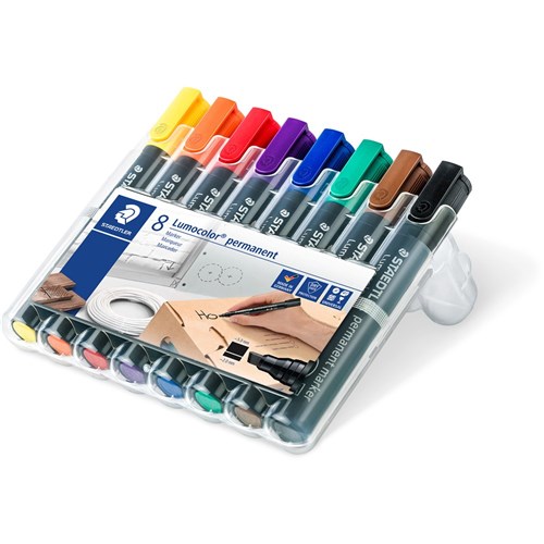 Staedtler 350 Lumocolor Permanent Marker Chisel 2-5mm Assorted Wallet of 8