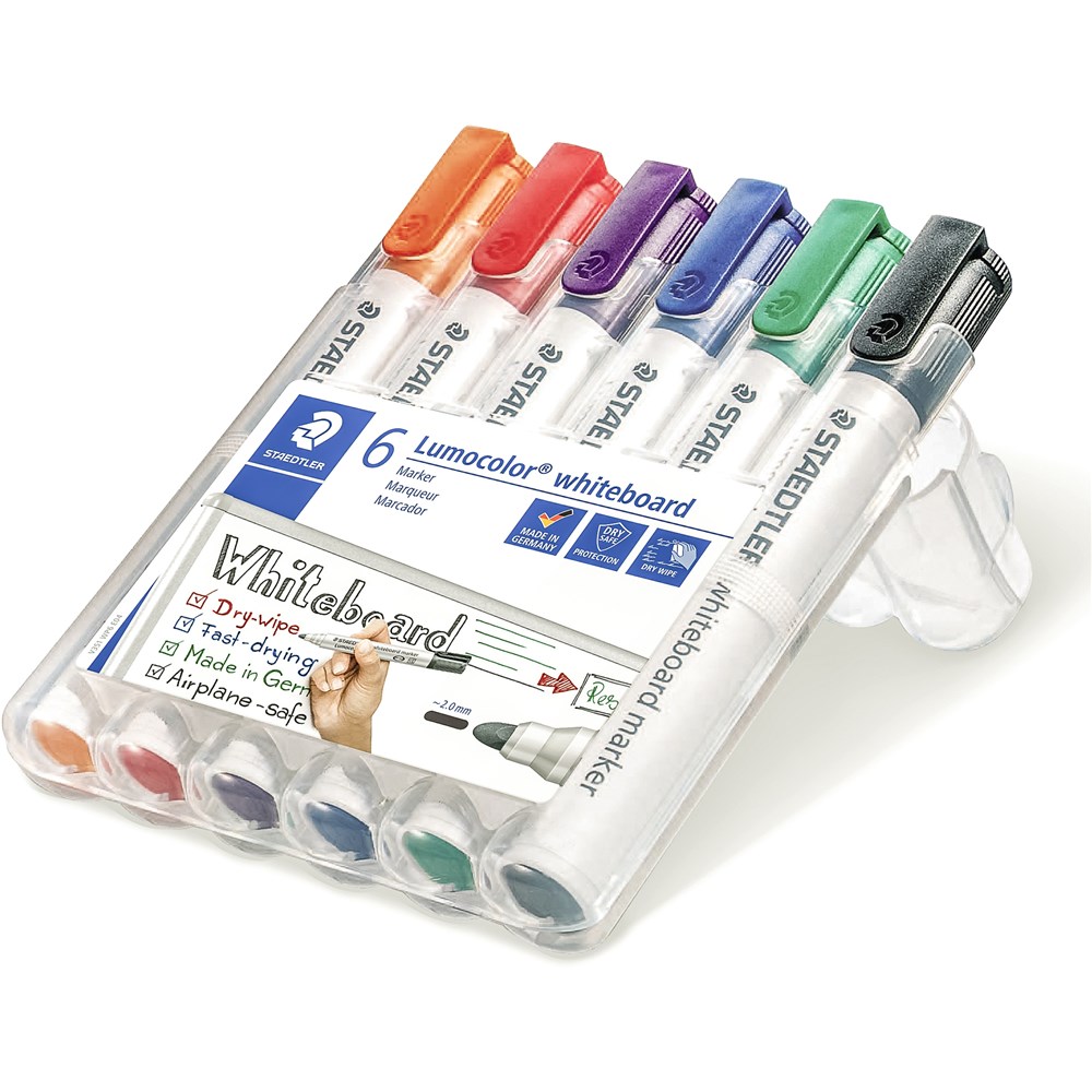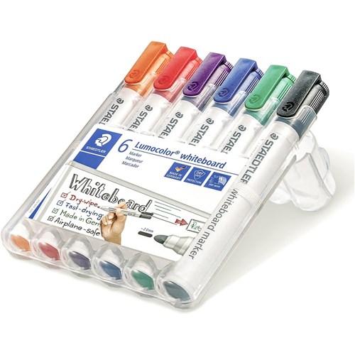Staedtler 351 Lumocolor Whiteboard Marker Bullet 2mm Assorted Colours Wallet Of 6