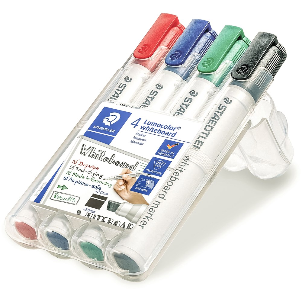 Staedtler 351 Lumocolor Whiteboard Marker Bullet 2mm Assorted Colours Wallet Of 4