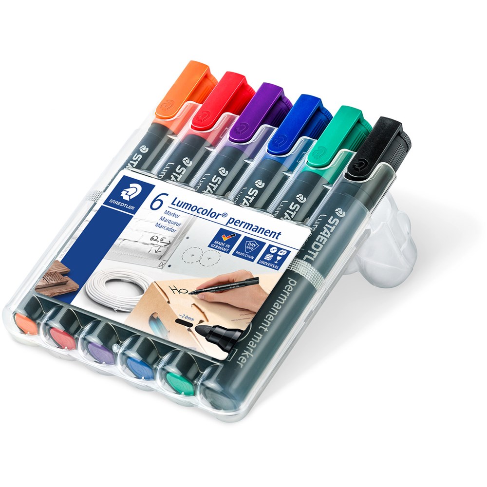 Staedtler 352 Lumocolor Permanent Marker Bullet 2mm Assorted Wallet of 6