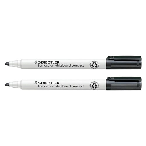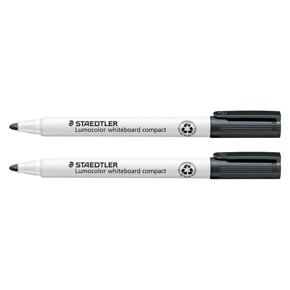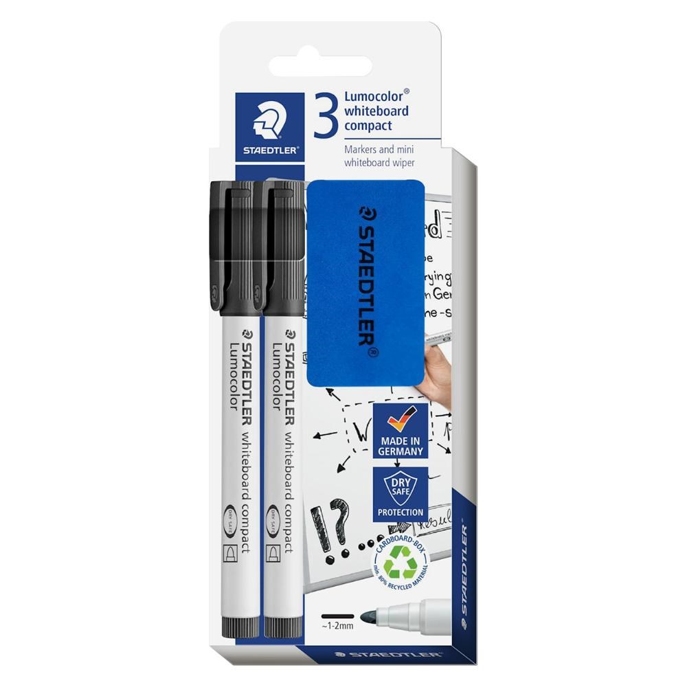 Staedtler Lumocolor Compact Whiteboard Marker Set Bullet 1-2mm + Eraser Black Pack Of 2